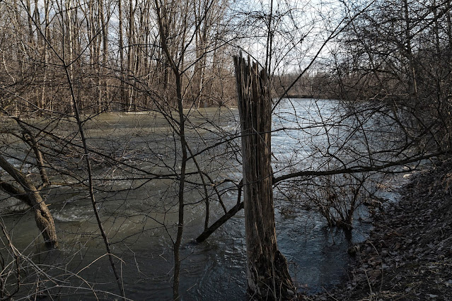 I had forgotten how wild it was down there. It's a place I used to have adventures occasionally as a pre-teen. Parents then didn't worry too much about where their kids went during the day. Heaven help any kid who fell into the river on a day like this. They'd be swept away in seconds.